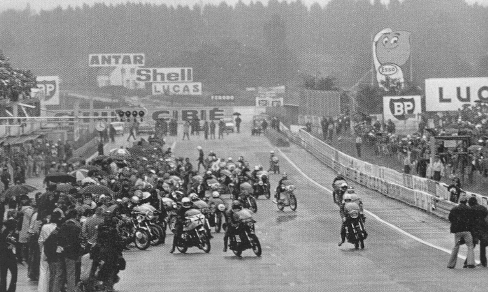 Le Bol d’Or n’eut pas lieu pendant la seconde guerre mondiale et reprit en 1947, de nouveau à Saint-Germain-en-Laye. Il y vit la victoire du français Gustave Lefèvre, sur une Norton. L’épreuve se courait alors seul, sans équipage. Le pilote assurait les 24 Heures sans jamais passer le relais ! Gustave Lefèvre, surnommé « Tatave », était une force de la nature, un gaillard d’une centaine de kilos, dur au mal. Il remporta ainsi sept Bol d’Or et tiendra longtemps le record de victoires de l’épreuve, avant que Vincent Philippe ne le batte, avec ses huit victoires au Bol depuis 2016. Durant les années 1950, le Bol d’Or perd de sa popularité auprès des motards. La moto en France ne se porte pas bien, le circuit de Montlhéry se trouve trop éloigné de Paris pour constituer un but de promenade, le nombre de motos engagées baissent… On trouve encore au départ des side-cars, mais aussi des scooters. En 1955, le 27ème Bol d’Or voit la victoire des pilotes tchèque Oldrich Hamersmidt et Sasa Klint sur une 350 Jawa (l’épreuve se court désormais à deux pilotes), l’équipage Brugeille/Daric termine lui 20ème et premier en catégorie scooter sur un Lambretta 125. Un dernier Bol d’Or a lieu en 1960, sans succès.