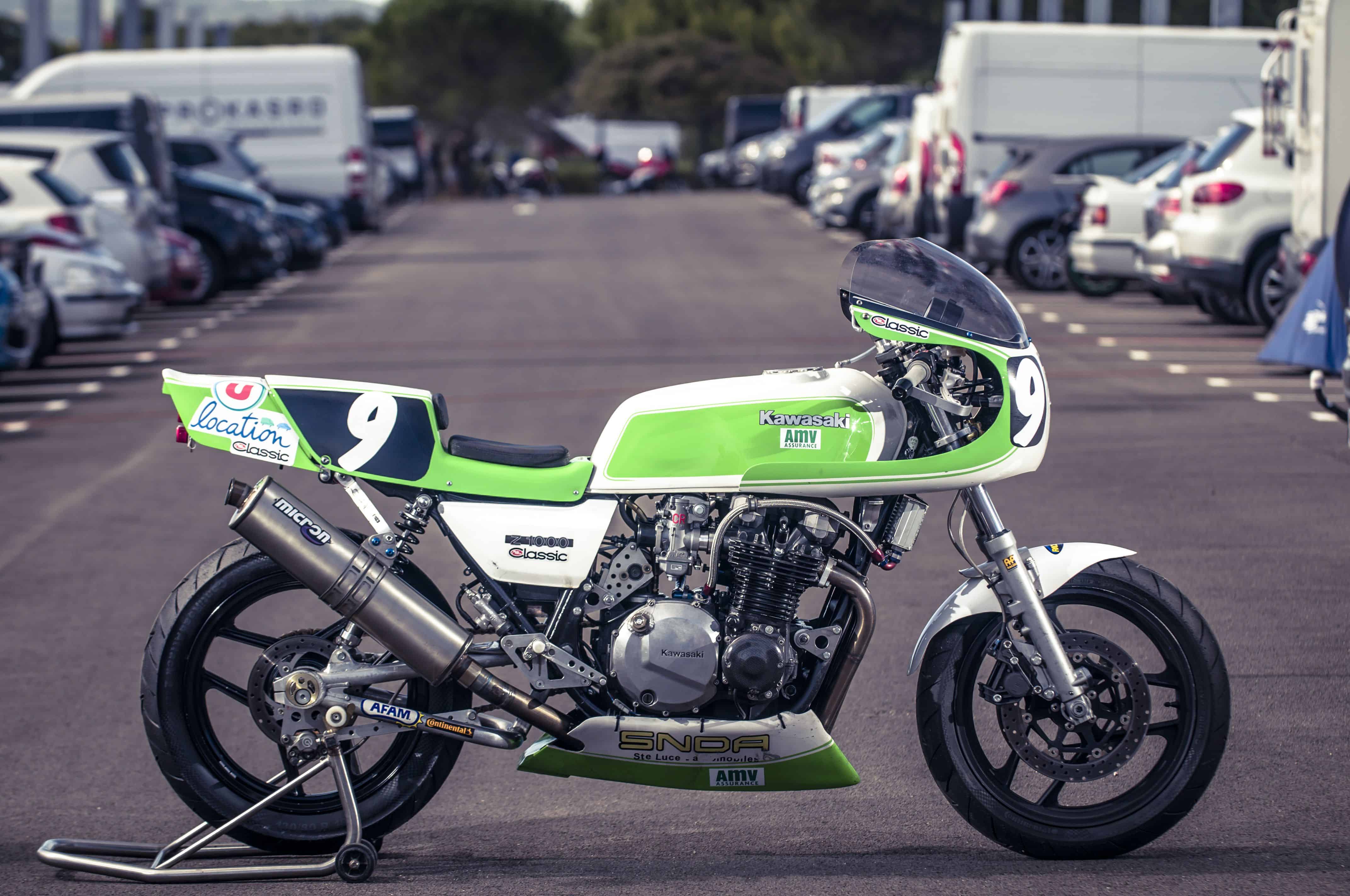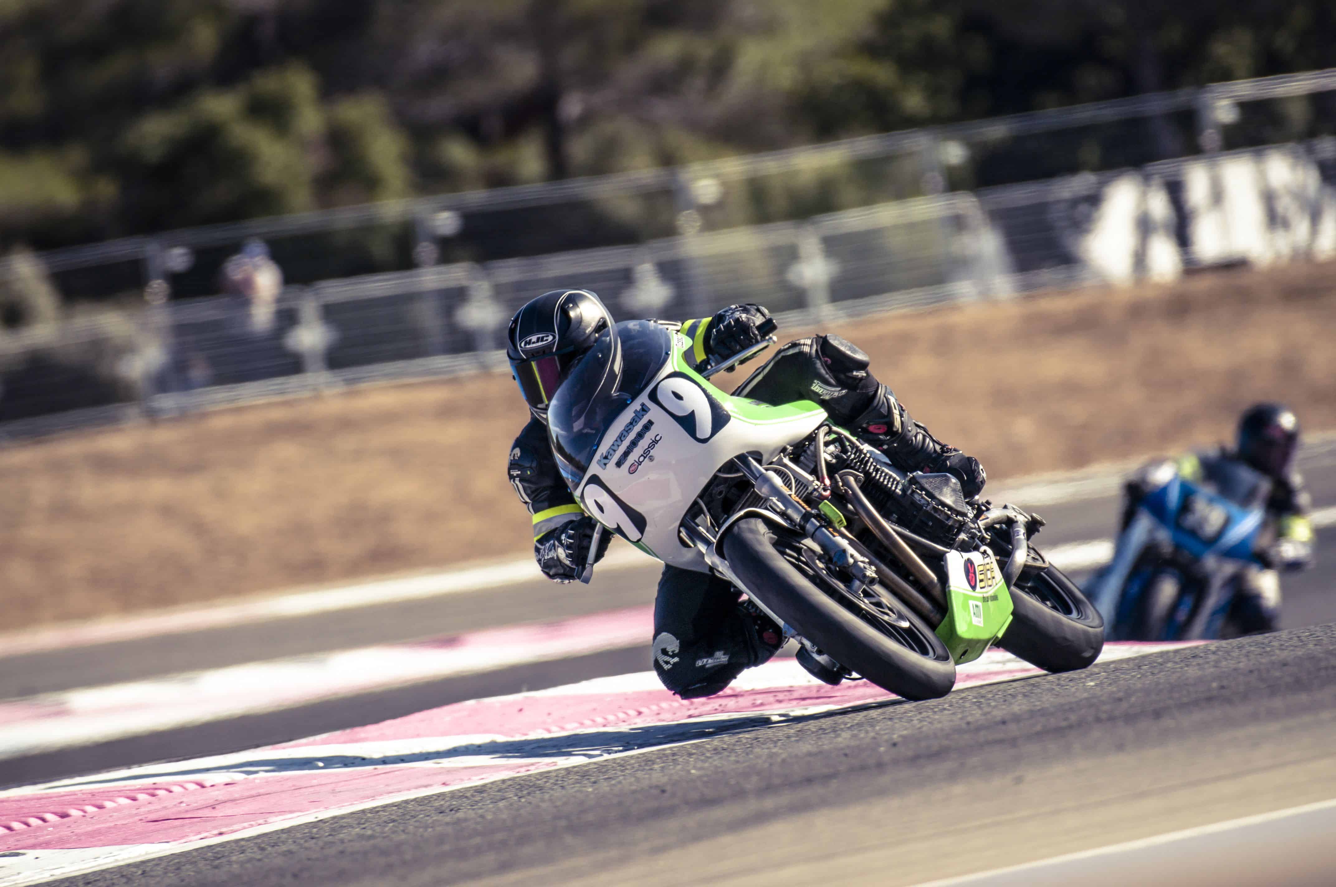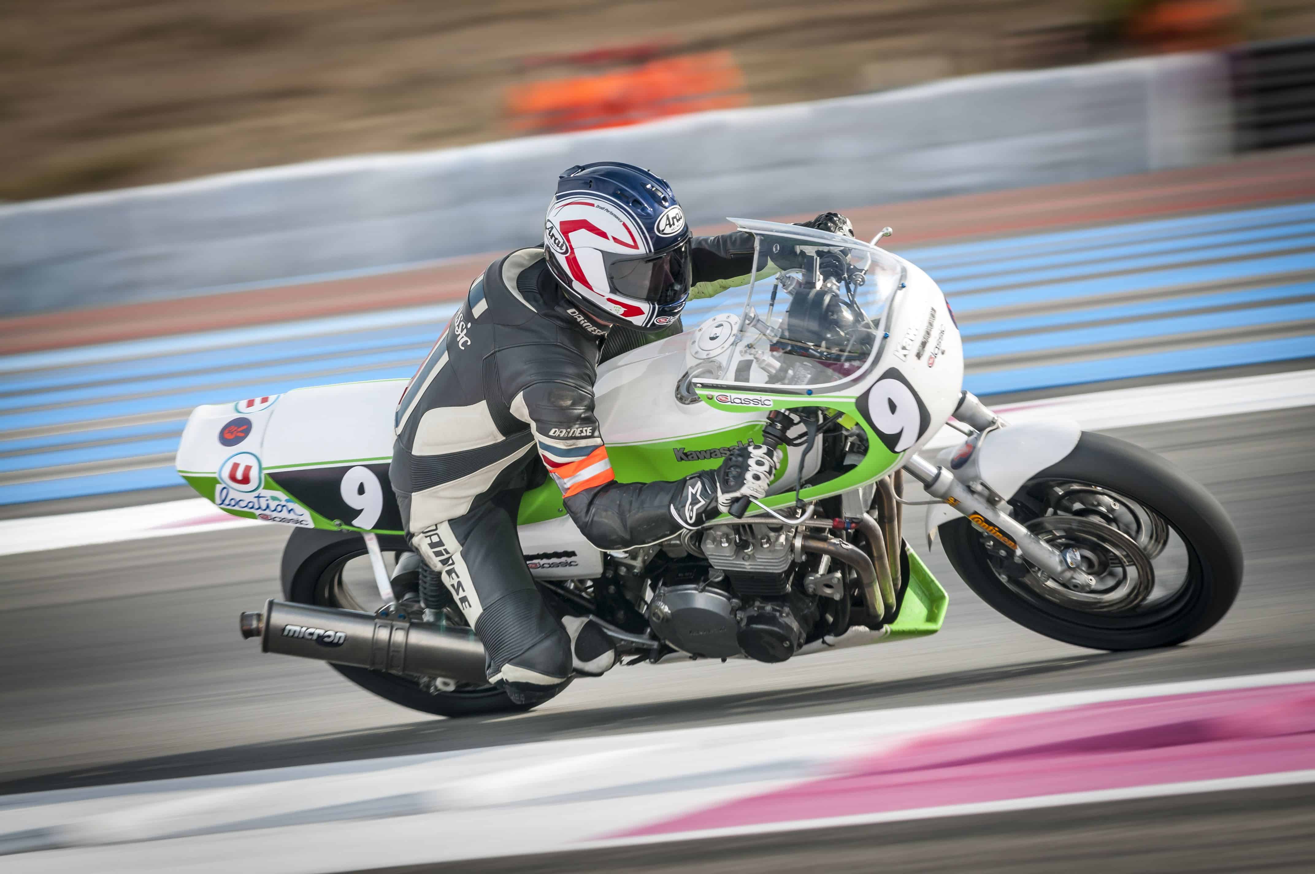 Reprenons le fil chronologique. Jeudi matin, tout allait bien, le soleil inondait le circuit Paul Ricard, les premiers essais ont plus servi à nous décrasser et retrouver le feeling avec la Kawa Z 1000 J qu’à taquiner le chrono. Première surprise, les Post Classic (motos comprises entre 1984 et 1991) ont pris le dessus. C’est la marche de l’histoire. Notre 1000 J de 1982, inscrite en catégorie Classic, passe dans le clan des antiquités. Mais Classic et Post Classic courent ensemble et définissent le classement général, ensuite divisé entre les deux catégories pour faire deux podiums. Sur soixante motos engagées, seulement 18 le sont en Classic.